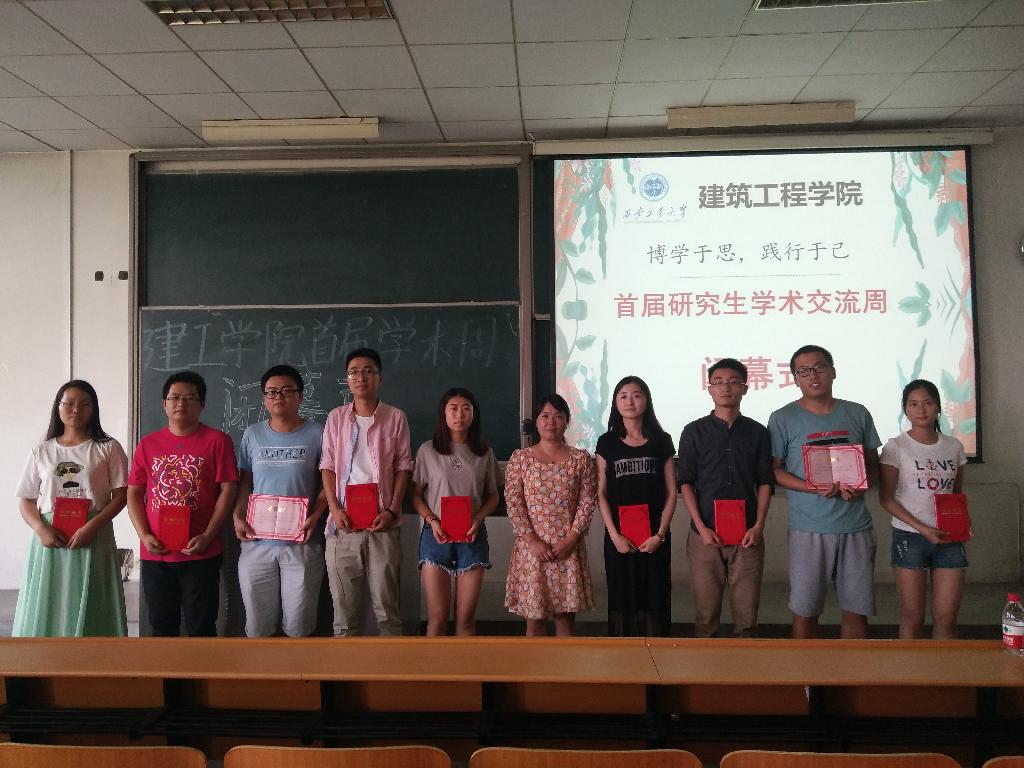 首先由建筑工程学院研究生代表高彬凯带领同学们回顾了学术周各场活动的内容、成果,表达了参与此次活动的感受,总结了本次活动的经验和不足。接下来,由赵敏副院长致闭幕词:赵院长首先对组织此次活动的老师、同学表达了深深的谢意,对研究生会的工作给予了肯定,同时指出:此次活动的成绩是显著的,意义是重大而深远的。她强调,本次学术周是学生会成立以来组织的首次大型活动,经过精心组织的各个板块凝聚了人气,激发了潜能,开阔了视野,提升了素质,得到了实效。活动结束后我们要善于总结经验和不足,针对这些不足,后期工作要大胆创新,勇于参与,加强学习。最后,由赵院长为获奖同学颁发荣誉证书,常乐、李伟等十名同学分别获得“最佳组织奖”、“最佳策划奖”、“最佳主持人奖”、“最佳参与奖”、“最佳主持人”等奖项。在一片掌声中,主持人宣布首届学术交流周圆满闭幕。