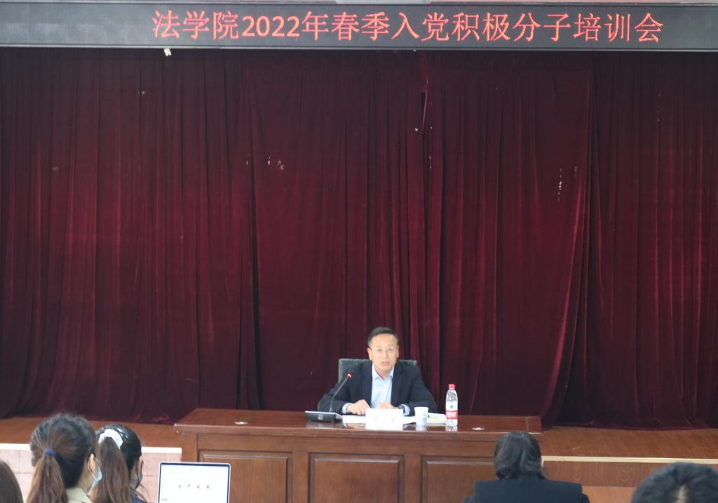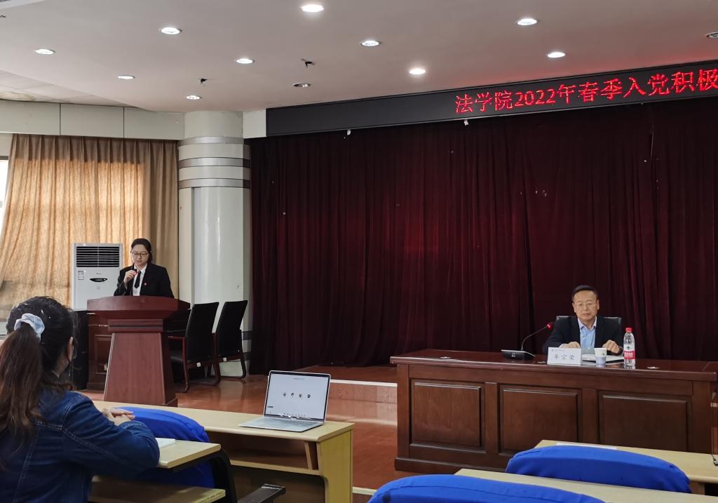 为进一步提高入党积极分子的政治素质和理论素养,4月26日下午,法学院在弘毅楼A201举行2022年春季入党积极分子线下培训班,由法学院专职组织员牟宗荣进行授课,法学院2022年春季全体入党积极分子参加了培训,培训会由法学院辅导员李怡然主持。