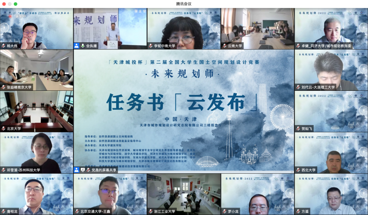 2022年7月2日上午,由自然资源部国土空间规划局指导,自然资源部职业技能鉴定指导中心主办,天津大学建筑学院承办的未来规划师——“天津城投杯”第二届全国大学生国土空间规划设计竞赛任务书“云发布”在天津市城市规划设计研究总院有限公司三层报告厅正式启动,发布会同时通过腾讯会议和网络直播。