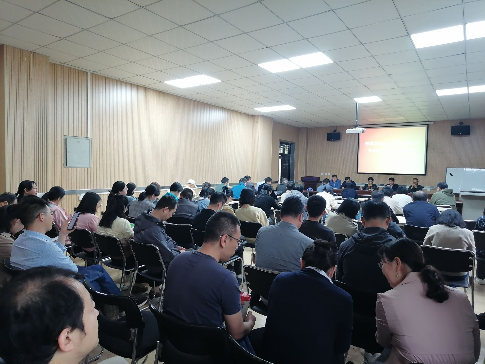 41下午,建筑工程学院在教4-201召开“提高政治站位  统一思想认识-扎实做好审核评估工作”主题大会学院领导班子以及全体教师参加了会议。