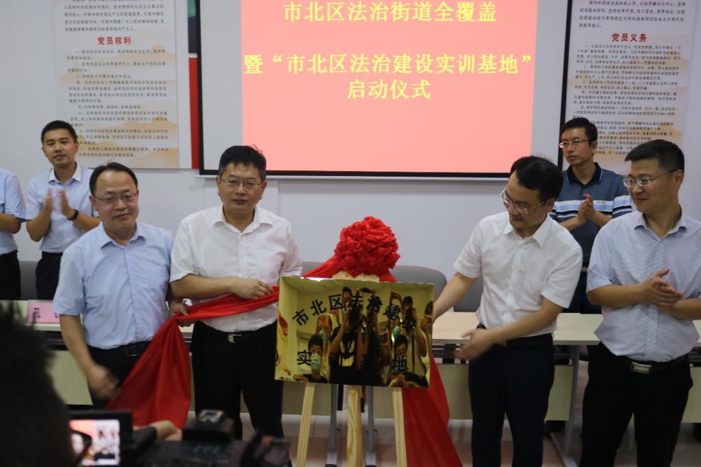 仪式上,青岛市司法局党委委员、副局长李文渊,市北区人民政府副区长钮本兵,青岛科技大学法学院院长王金堂,市北区司法局党组书记、局长冯书盛共同为“大学生法治建设实训基地”揭牌,并签署协议书。