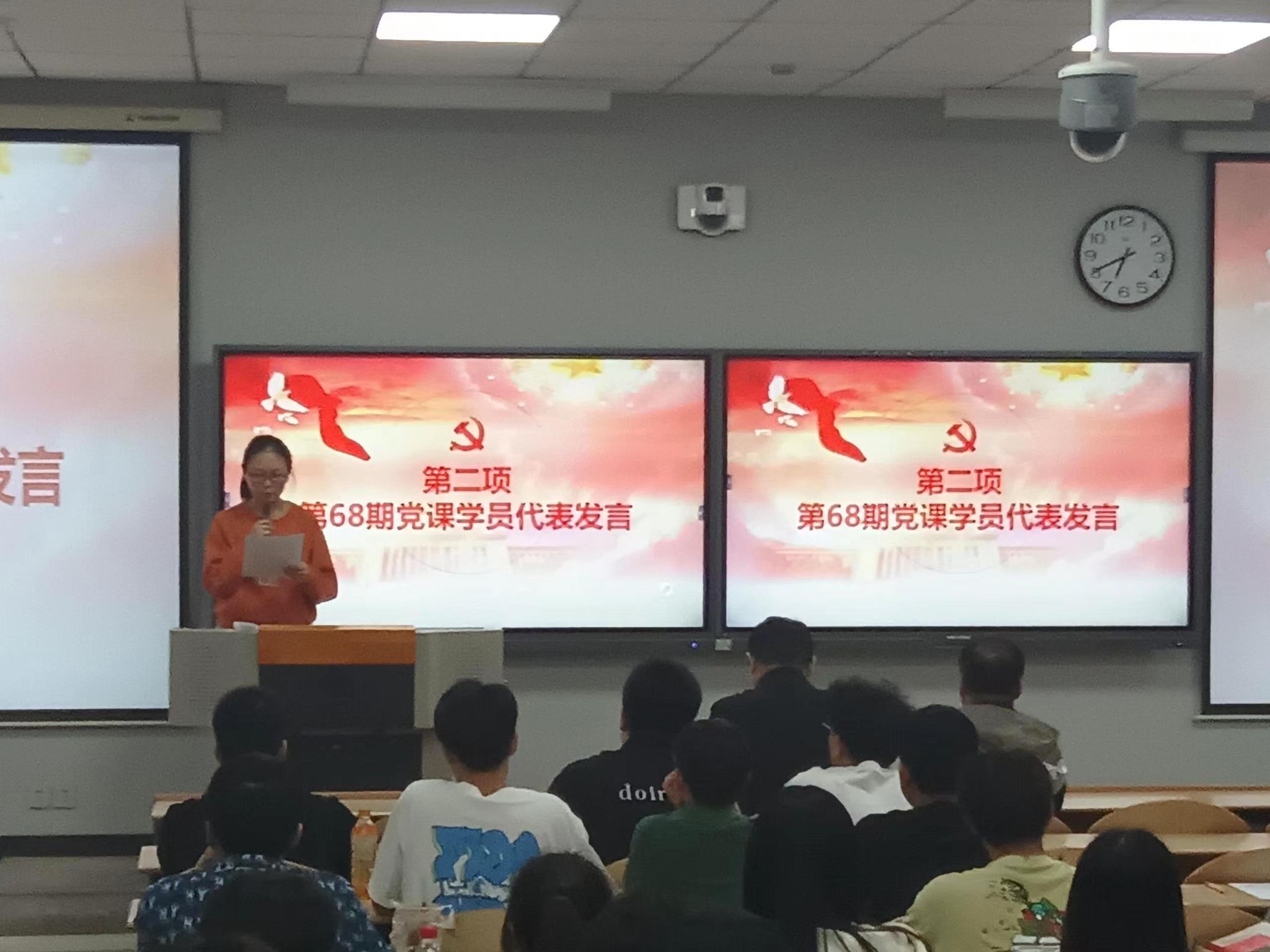开班仪式上,主持人章诗涵介绍了党课的基本内容并宣读了课程纪律和管理规定。光电工程学院学员代表洪芳菲和建筑工程学院学员代表朱俊豪分别了发言,表明了自己参与本次党课的决心,激励大家珍惜本次党课的学习机会,用实际行动向党组织靠拢。