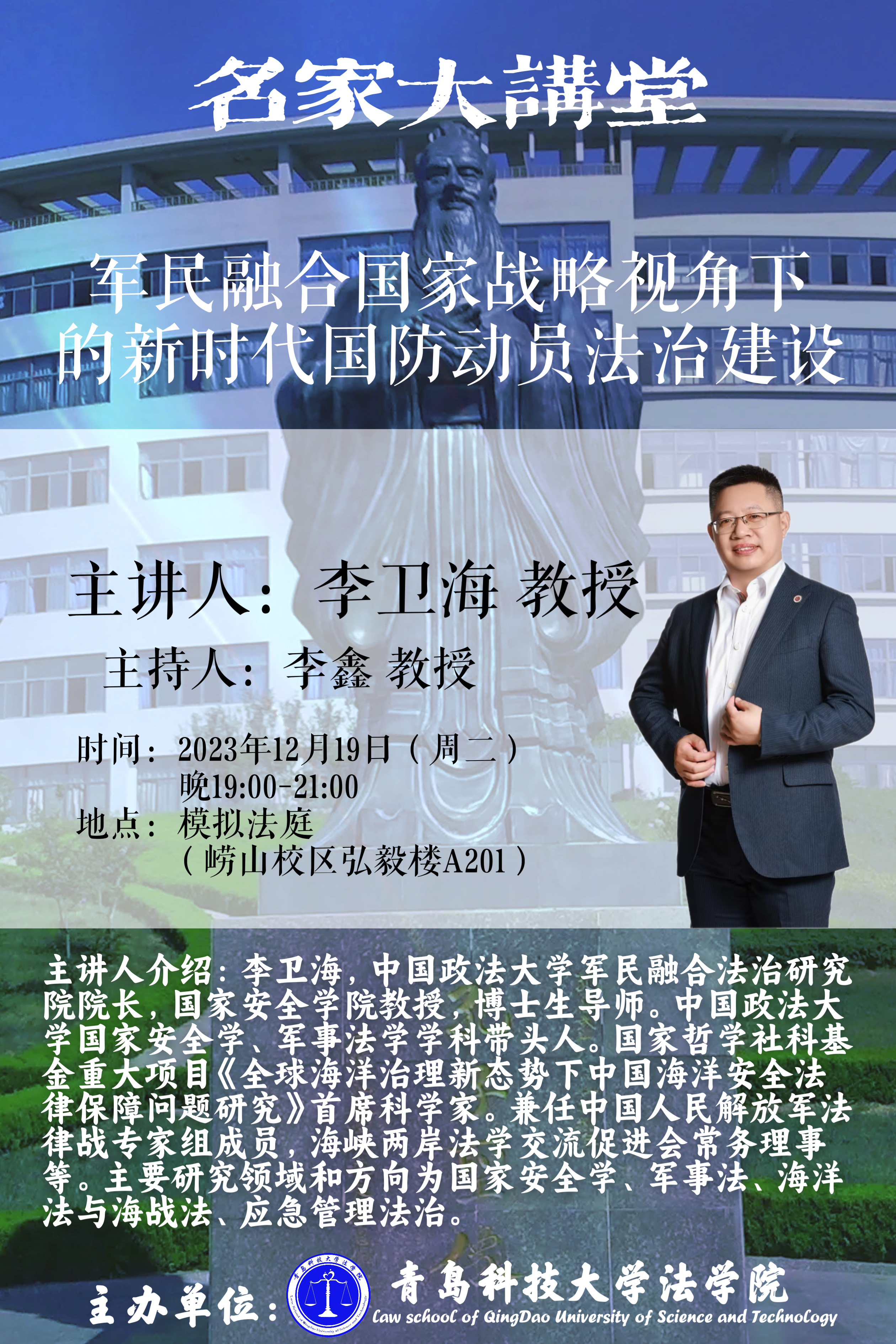 法学院名家大讲堂:军民融合战略视角下的新时代国防动员法治建设