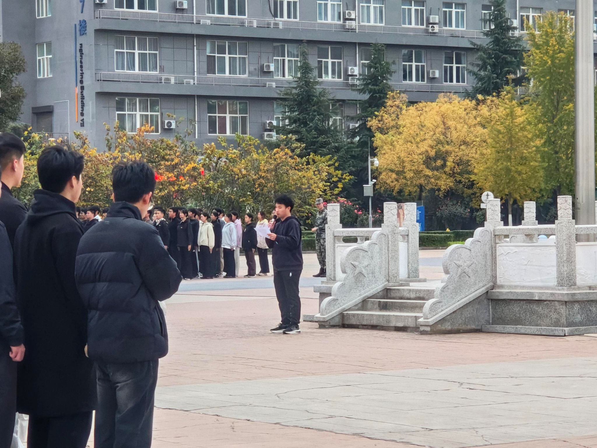 11月10日清晨,建筑工程学院组织全体学生在经纬广场参加升国旗仪式,全院师生参加。旨在加强爱国主义教育,增强学生的集体荣誉感和纪律意识。
