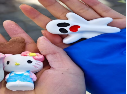 “创意手作展区”里,一件件作品整齐陈列,每一件都凝聚着创作者的巧思。石膏模型色彩斑斓,陶土作品憨态可掬,木质结构简约实用,不少作品巧妙融入废旧材料,完美诠释“变废为宝”的环保理念。参与者们为作品贴上署名标签,纷纷拍照打卡上传社交平台,分享创作成就感。