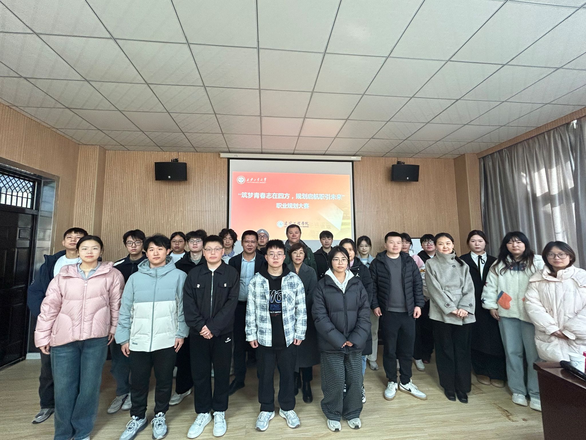 11月27日,建筑工程学院在教4-201举办“筑梦青春志在四方,规划启航职引未来”第三届职业规划大赛,旨在进一步增强学生职业生涯规划意识与就业竞争力,引导学生树立正确成才观、职业观与就业观,实现更高质量和更充分就业。学院党委副书记贾建利、城乡规划专业负责人杨晓娟、智能建造系主任李养成、学工办主任刘冬、辅导员秦亚敏、翟逸玥担任评委,来自成长与就业赛道的20名选手参与现场展示。