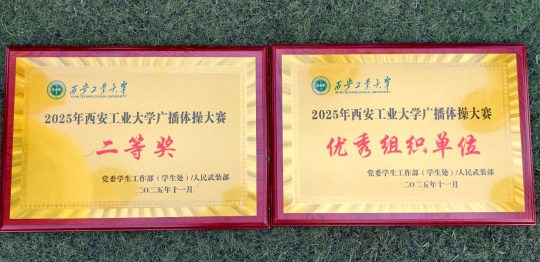 我校于11月21日下午在田径体育场举行了2025年西安工业大学广播体操大赛,我院积极组织学生参赛,凭借整齐划一的动作、昂扬向上的精神风貌,最终斩获大赛二等奖,同时因赛事组织有序、团队展现突出,荣获优秀组织奖。