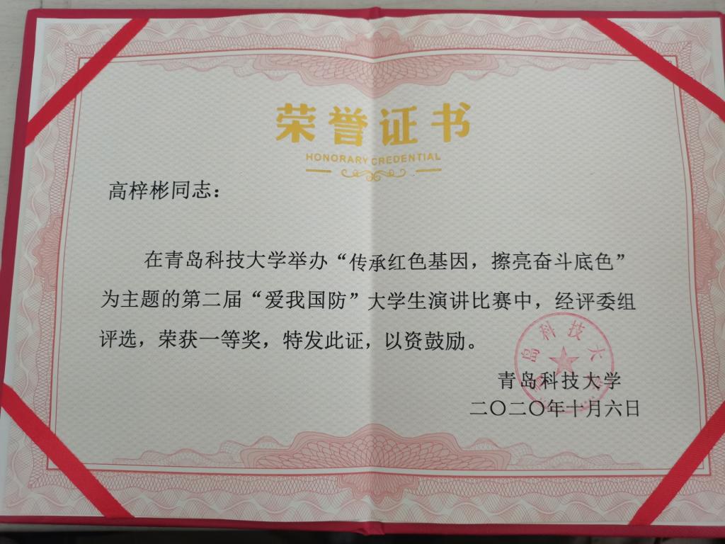 为抓好我校国防教育特色学校建设,激发大学生参军报国的政治热情,学校于10月6日举办第二届“爱我国防”大学生主题演讲比赛。全校推荐的27名选手全数参加当天比赛,我院法学专业20级2班高梓彬同学代表我院参加了本次比赛。