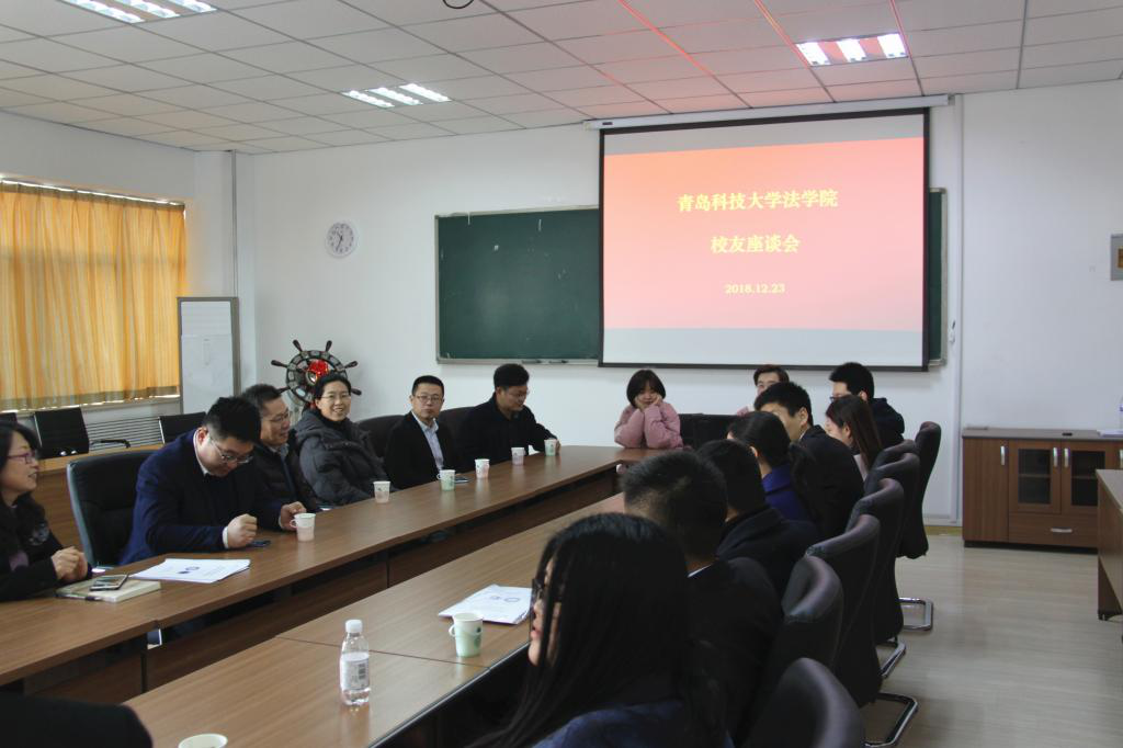 12月23日,青岛科技大学法学院校友会成立大会于弘毅楼A201模拟法庭召开。