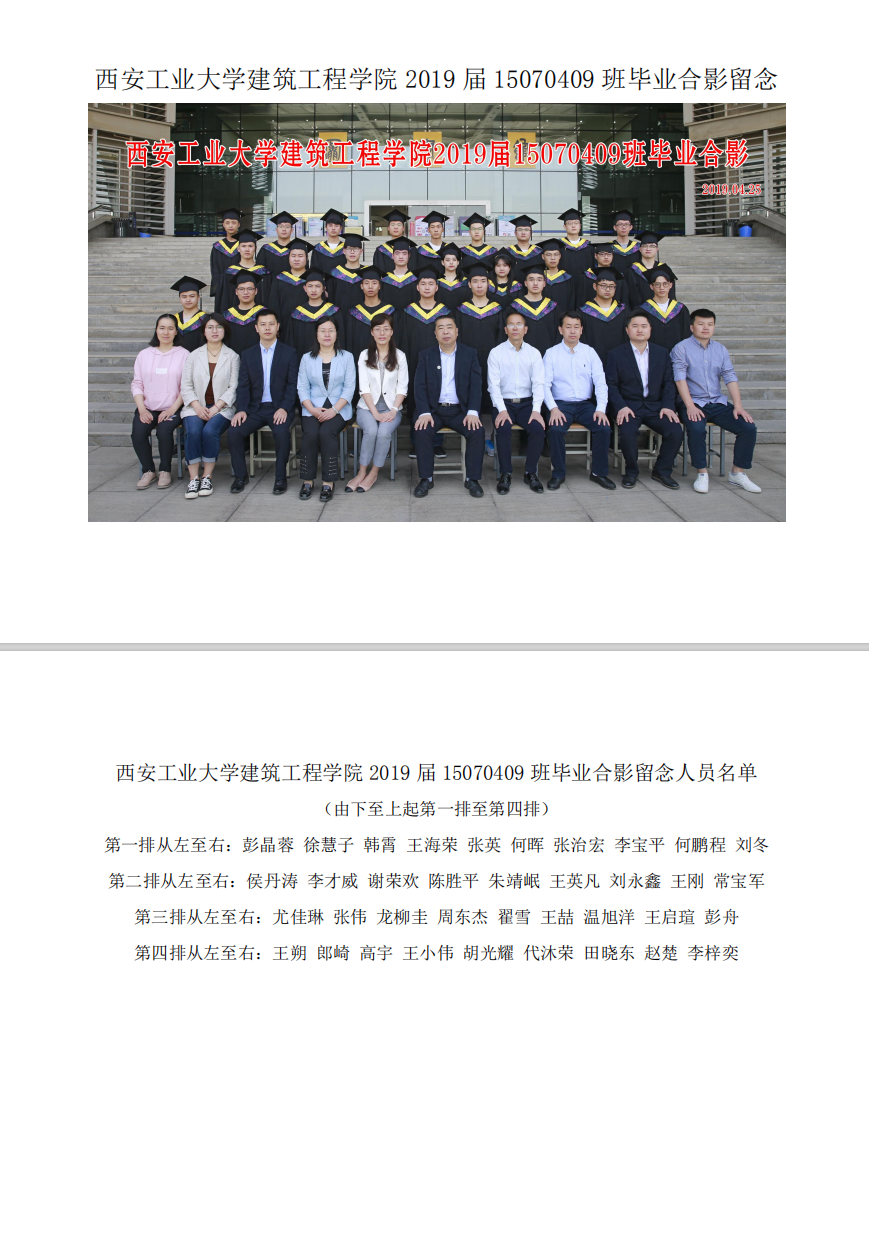 西安工业大学建筑工程学院2019届15070409班毕业合影留念