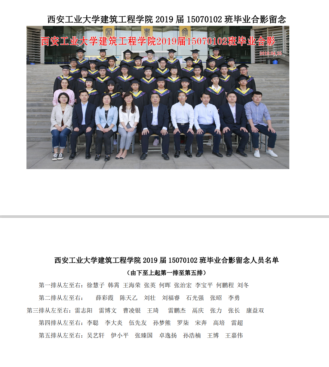 西安工业大学建筑工程学院2019届15070102班毕业合影留念