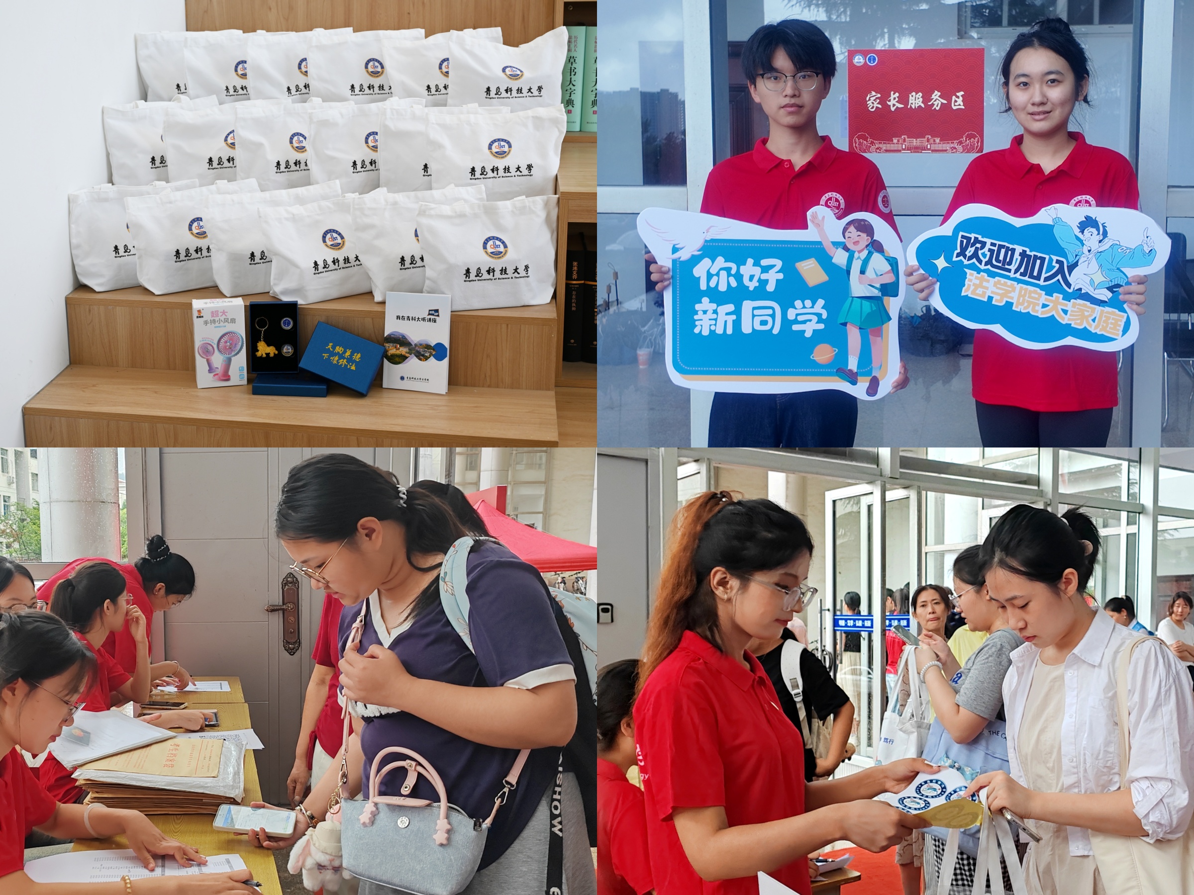 暖心服务“全覆盖”,细节之处见真情。学院系统加强志愿者培训,科学分工,责任明确,服务贴心。报到前,学院组织检查新生宿舍安全、卫生情况,确保新生可直接拎包入住。为新生准备新生大礼包,包含校徽、定制版院徽和獬豸钥匙扣等文创产品,以及“开讲LAW”系列讲座精选集《我在青科大听讲座》一书,增强新生的归属感与幸福感。学院优化报到流程,提升报到体验,还为家长设置了休息区,让新生和家长感受学院带来的温暖。