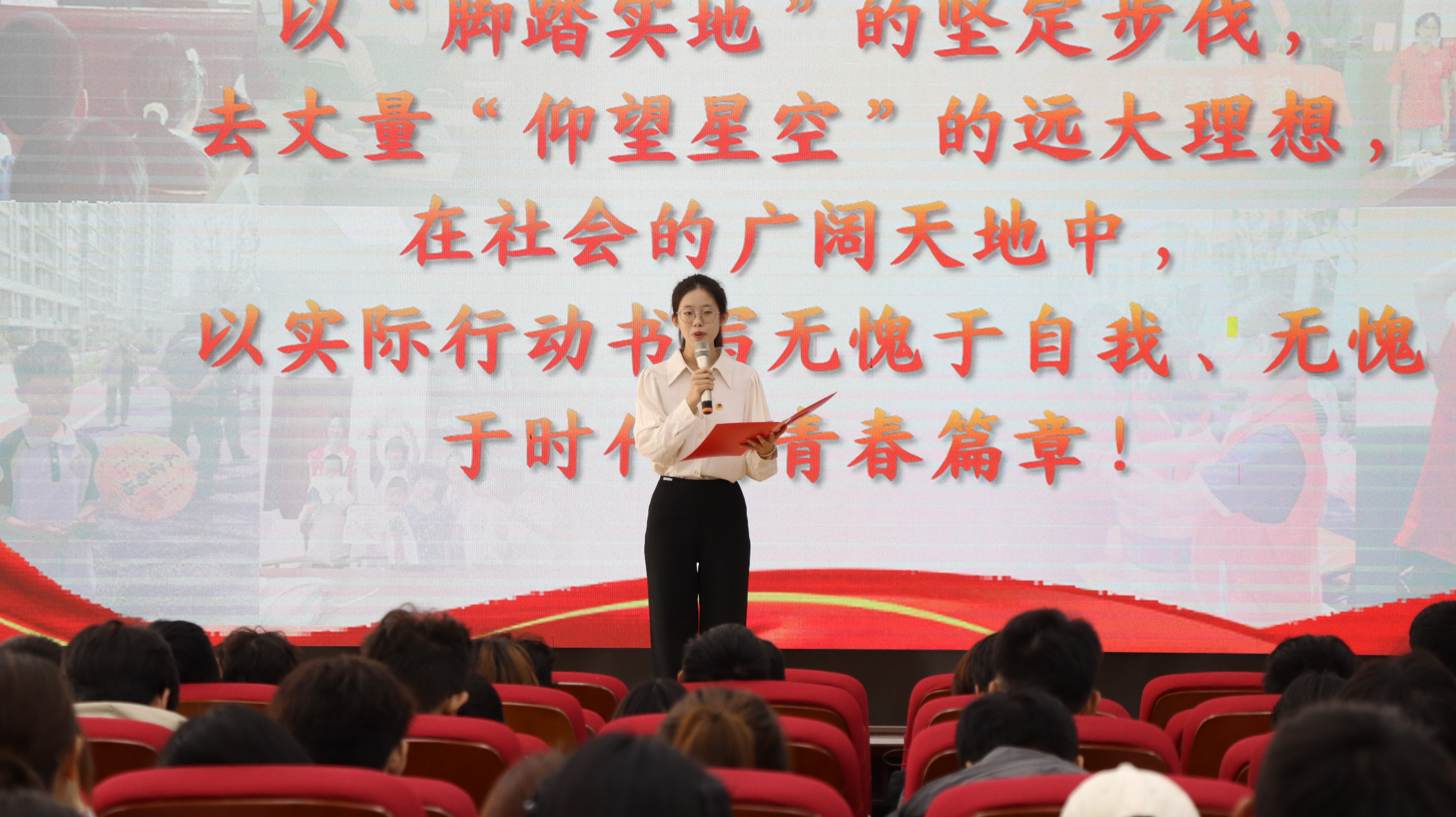 活动现场,张琪韵围绕“以理想之光,践青春之行”这一主题,对经典作品《组织部来了个年轻人》进行深刻解读。她将主人公林震初入组织部的理想坚守与现实困境,与自身从文学“旁观者”到社会“参与者”的成长历程紧密交融。通过分享在社区服务、关爱留守儿童等实践活动中的亲身经历,以青春视角诠释了新时代青年将个人理想扎根于现实土壤的实践路径。她突破传统读书分享形式,以富有感染力的表达展现了“林震式勇气”的当代回响,充分彰显出法学院学子知行合一、担当使命的青春风采。