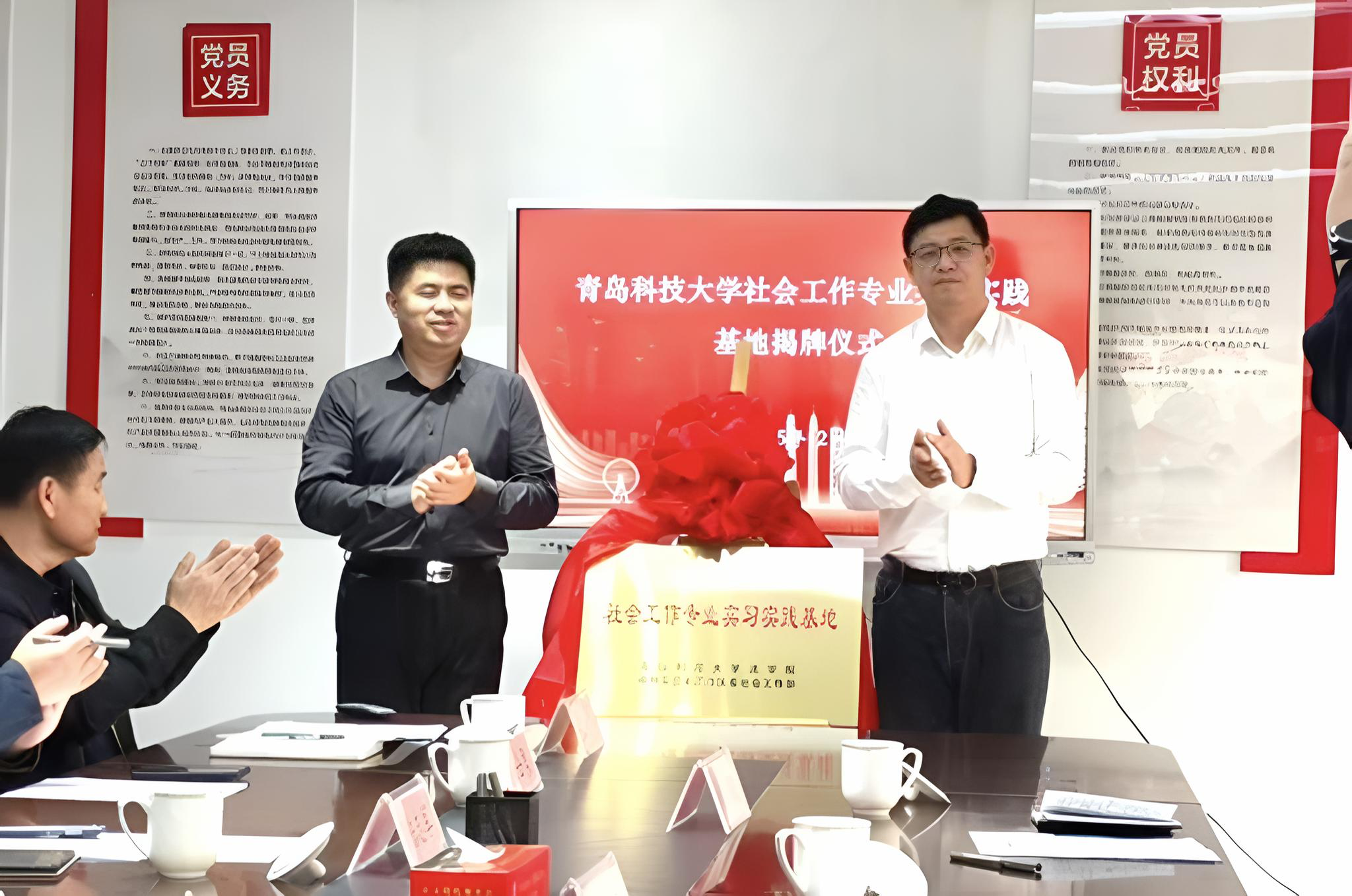 活动中,曲明和许孝磊为青岛科技大学社会工作专业实习实践基地揭牌。河口区3名优秀社区书记被聘为我校社会工作专业校外实训导师。双方围绕社会工作人才共育、项目共研、成果共享等合作机制进行深入座谈。