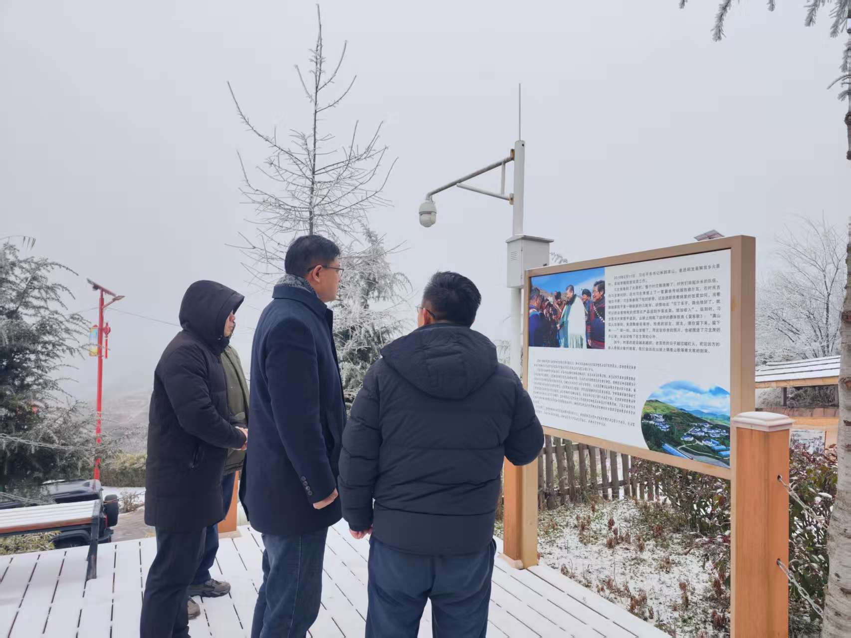 1月7日,法学院党委书记曲明、副院长陈为智、教师郝素玉一行三人跨越2400多公里,冒雪走进四川省大凉山彝族自治州昭觉县解放沟镇火普村,沿着总书记的足迹,走访并调研社会治理经验,看望学院在当地的西部计划志愿者。昭觉县团委副书记孙宇、火普村驻村第一书记东方电气集团挂职干部严菲、解放沟镇与火普村相关工作人员等共同参加活动。