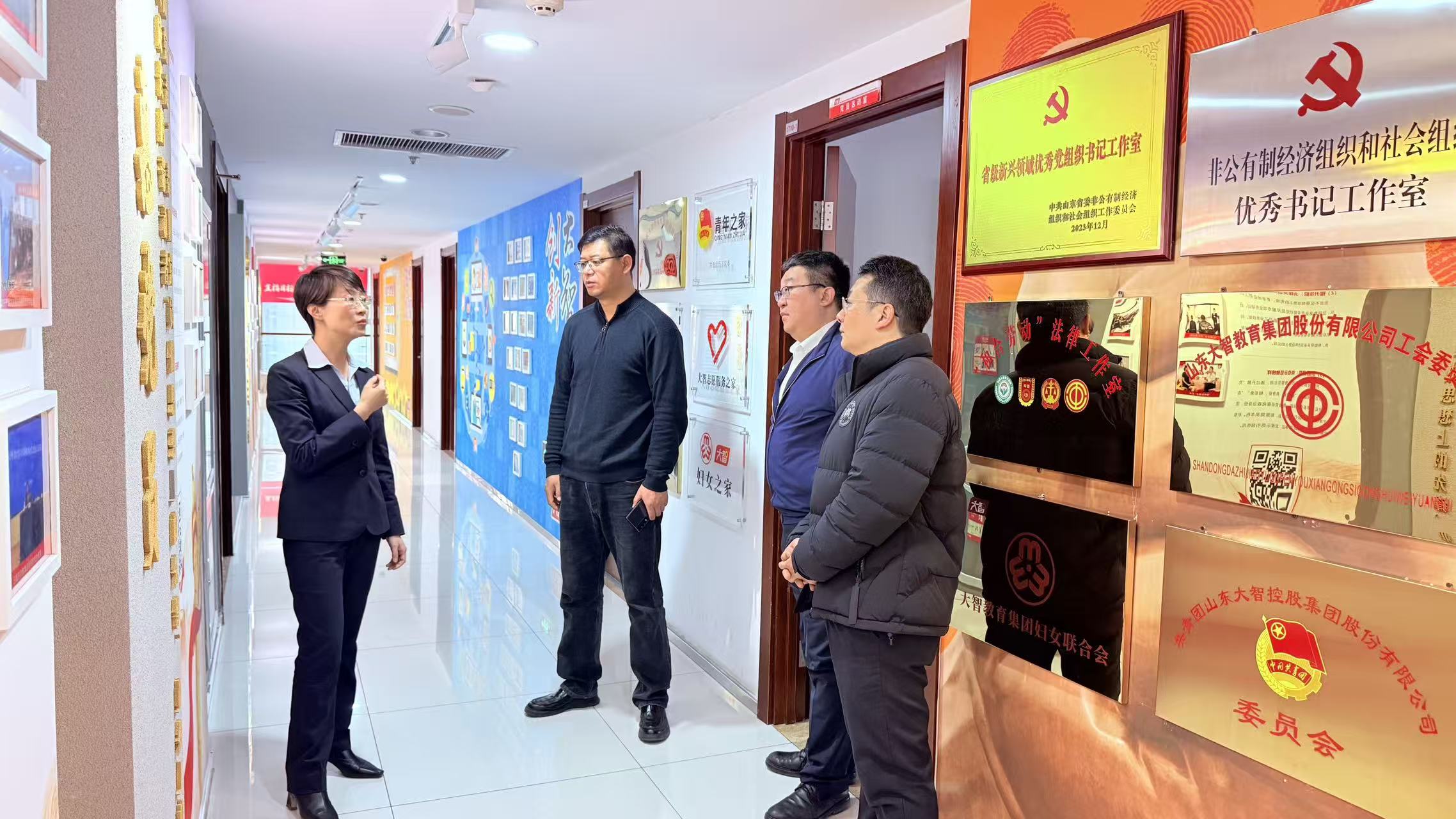 座谈交流环节,双方围绕人才培养、岗位供给等核心议题展开深入探讨。座谈结束后,法学院一行参观了大智控股集团的党建长廊、办公区域及文化阵地,近距离感受企业的文化氛围、管理模式及发展活力,进一步明晰了企业的人才需求导向和合作切入点。