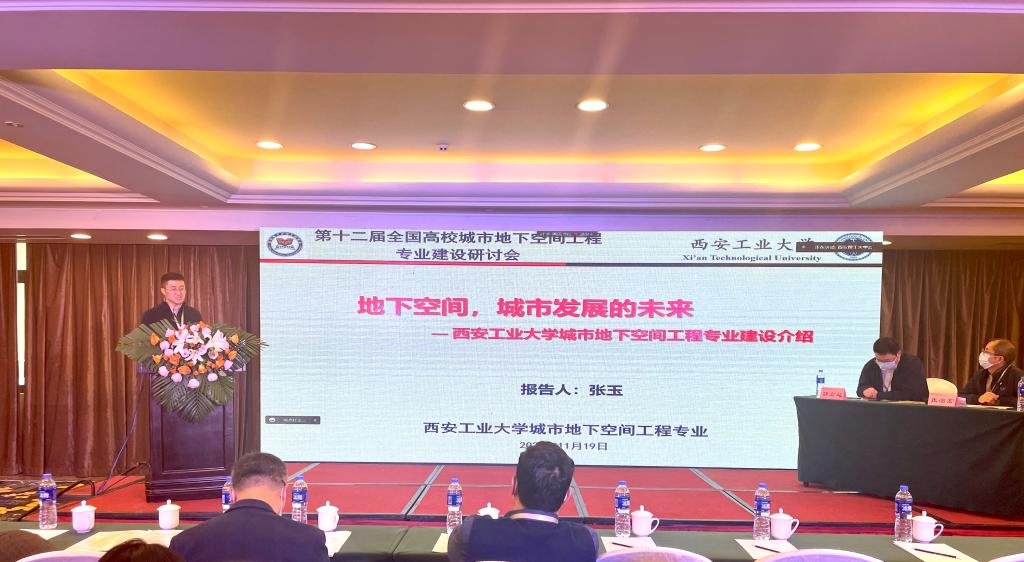 第十二届全国高校城市地下空间工程专业建设研讨会于2022 年 11 月 18-20 日召开,本次研讨会以“积极响应双碳战略,持续推进城市地下空间工程专业建设”为主题。西安工业大学建筑工程学院为承办单位之一,学院院长黄华,副院长张治宏,岩土与地下工程系主任张玉,及部分教师线下参加了会议;同时在岩土与地下工程系设置线上分会场,本系全体教师及学生参加了视频会议。会议期间黄华教授为特邀嘉宾,张治宏副教授为专题会场主持人,张玉副教授做了题为“地下空间,城市发展的未来—西安工业大学城市地下空间工程专业建设历程”的主题报告。