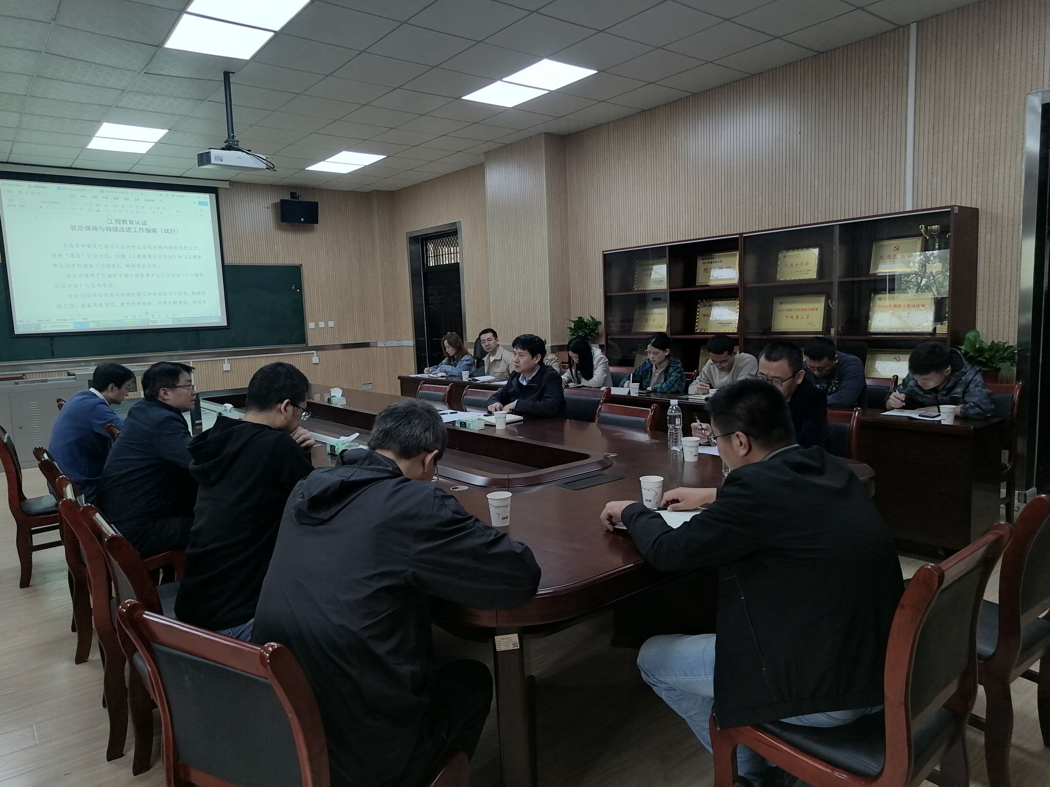 会上,黄华院长对土木工程专业认证中期检查工作进行了安排部署,明确职责分工和完成时间节点,指定分项工作责任人,并对重点和要点工作进行了说明。土木工程专业负责人、土木工程系主任李成华老师带领大家共同学习了《工程教育认证状态保持与持续改进工作指南》。