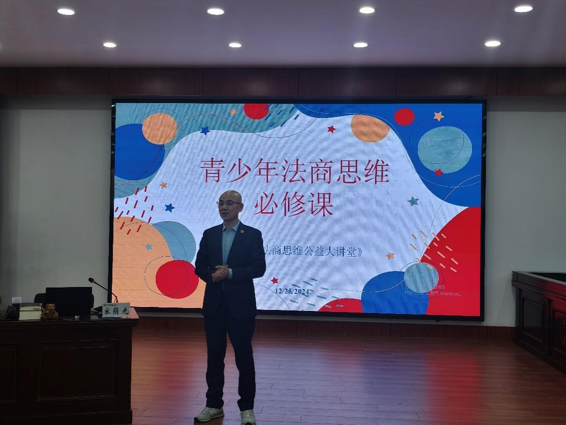 12月25日下午,法学院“名家大讲堂”在弘毅楼A201模拟法庭成功举办。本期讲堂的主题为“青少年法商思维必修课”,山东美誉律师事务所专职律师、独角兽私董会创始人宋荫光受邀主讲。讲座由法学院团委高媛老师主持,法学院研究生代表参加本次讲座。
