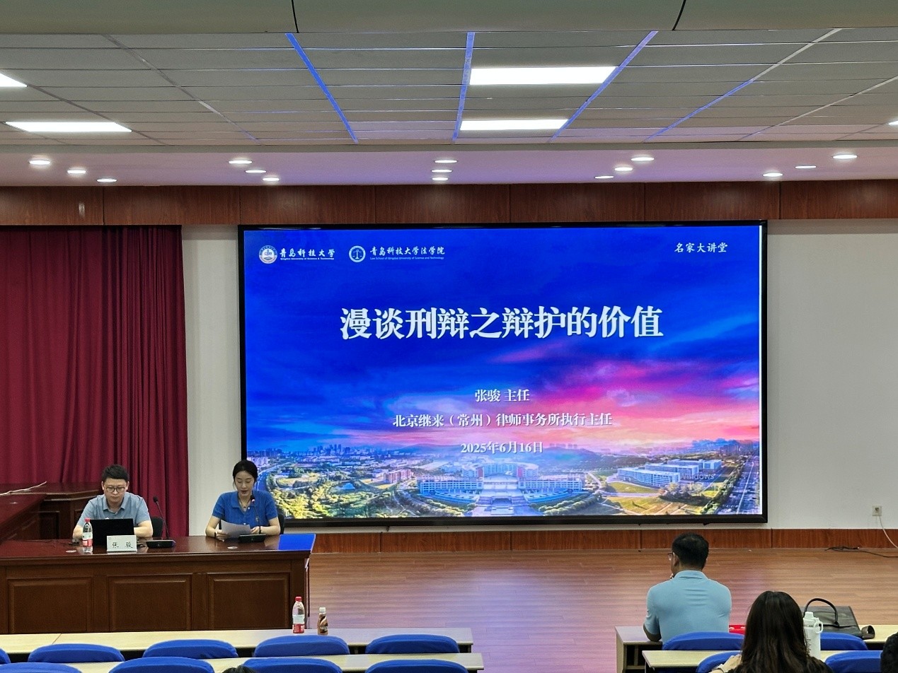 6月16日晚,法学院“名家大讲堂”在弘毅楼A201模拟法庭成功举办。本期讲堂的主题为“漫谈刑辩之辩护的价值”,北京继来(常州)律师事务所党支部书记、执行主任张骏受邀主讲。讲座由法学院党委书记曲明主持。