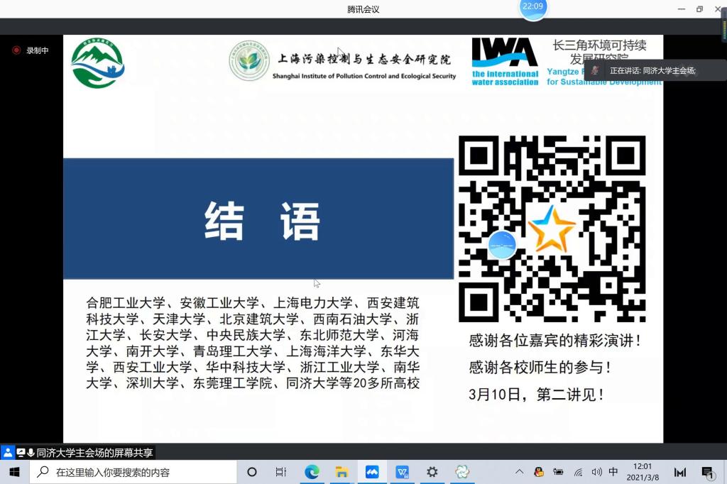 此次云端毕业实习是由上海污染控制与生态安全研究院、国际水协会(IWA)、长三角可持续发展研究院主办,同济大学承办,华中科技大学、浙江大学和西安工业大学等全国20所高校共同协办的2021春季“校-企-协云端实习”系列讲座,该讲座采用腾讯会议的方式开展。中南建筑设计院雷神山医院给排水总工程师是洪瑛、上海化学工业区中法水务发展有限公司水研究中心周珉、南通市经济技术开发区通胜排水有限公司刘海燕、杭州市天子岭生活垃圾卫生填埋场的赵佳莹等专家分别结合自己的工作实际,在视频与图文辅助下,奉献了一场场精彩的讲座,使学生们似乎身临其境,受益匪浅。