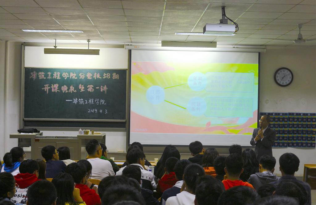 4月3日下午,建筑工程学院第58期积极分子培训班开班典礼暨第一次理论授课在教2-210举办。学院党委书记张英、党委副书记张治宏、团委书记安春雨、党委组织员徐慧子及120名党课学员参加了此次开班典礼。