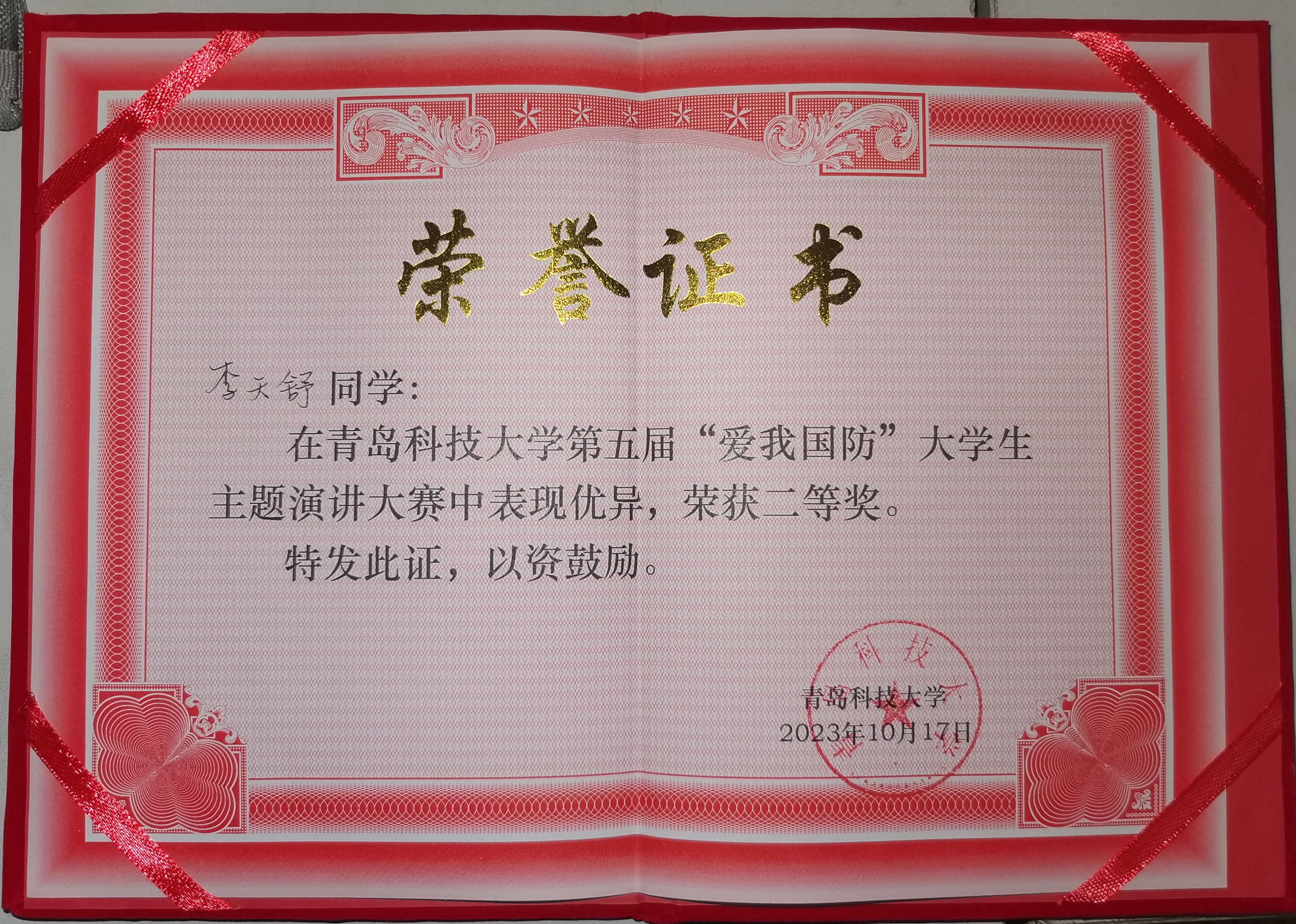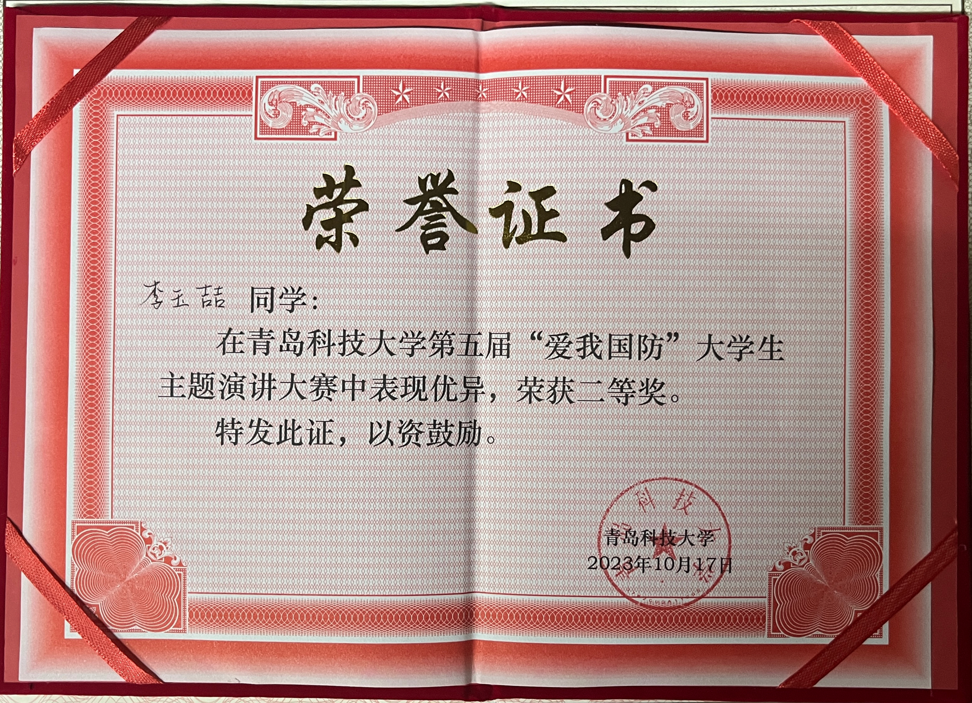 10月17日下午,青岛科技大学第五届“爱我国防”大学生主题演讲大赛暨退役大学生士兵巡回宣讲圆满落幕。法学院3名学子表现突出,法学院学生周浩荣获一等奖,李玉喆、李天舒荣获二等奖。其中,周浩、李玉喆将代表学校参加“爱我国防”青岛市大学生主题演讲大赛。本次活动由市北区委宣传部、学校党委学生工作部(处)、武装部主办,机电工程学院承办,经过初赛和复赛的层层选拔,共有14名选手入围校级决赛。