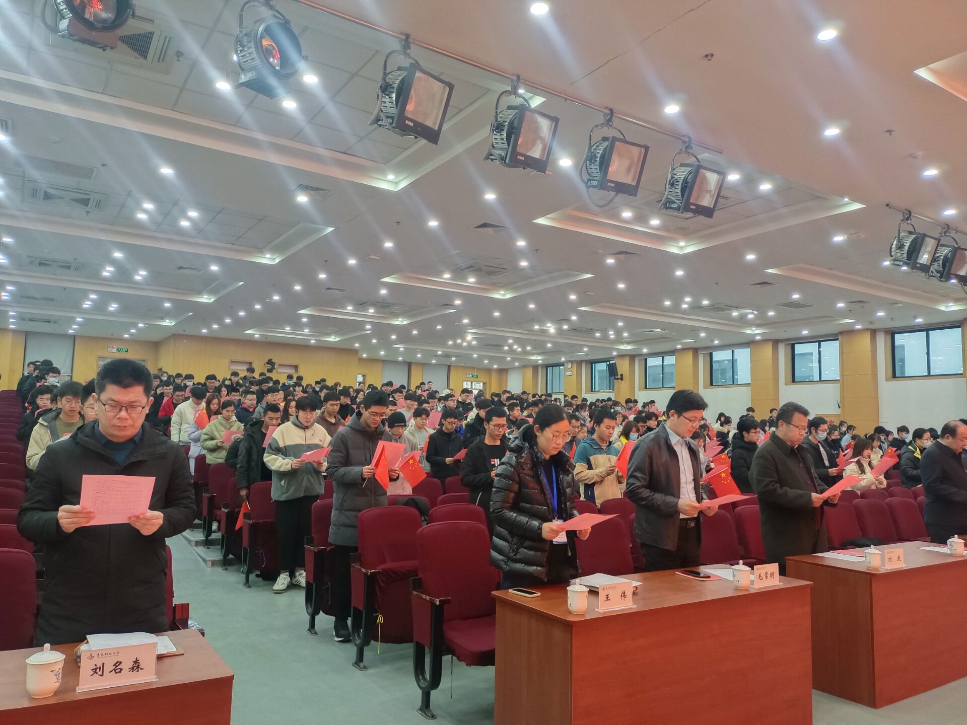 12月3日上午,法学院学生代表于崂山校区第二报告厅参加了国家宪法日“宪法晨读”活动。在洪亮的朗读声中,同学们共同体会宪法的高度权威、感受宪法的庄严神圣、领会宪法的内在精神。朗读结束后,随着《宪法伴我们成长》的音乐响起,同学们右手轻轻挥动国旗,放声合唱,歌声在报告厅内缓缓回荡。