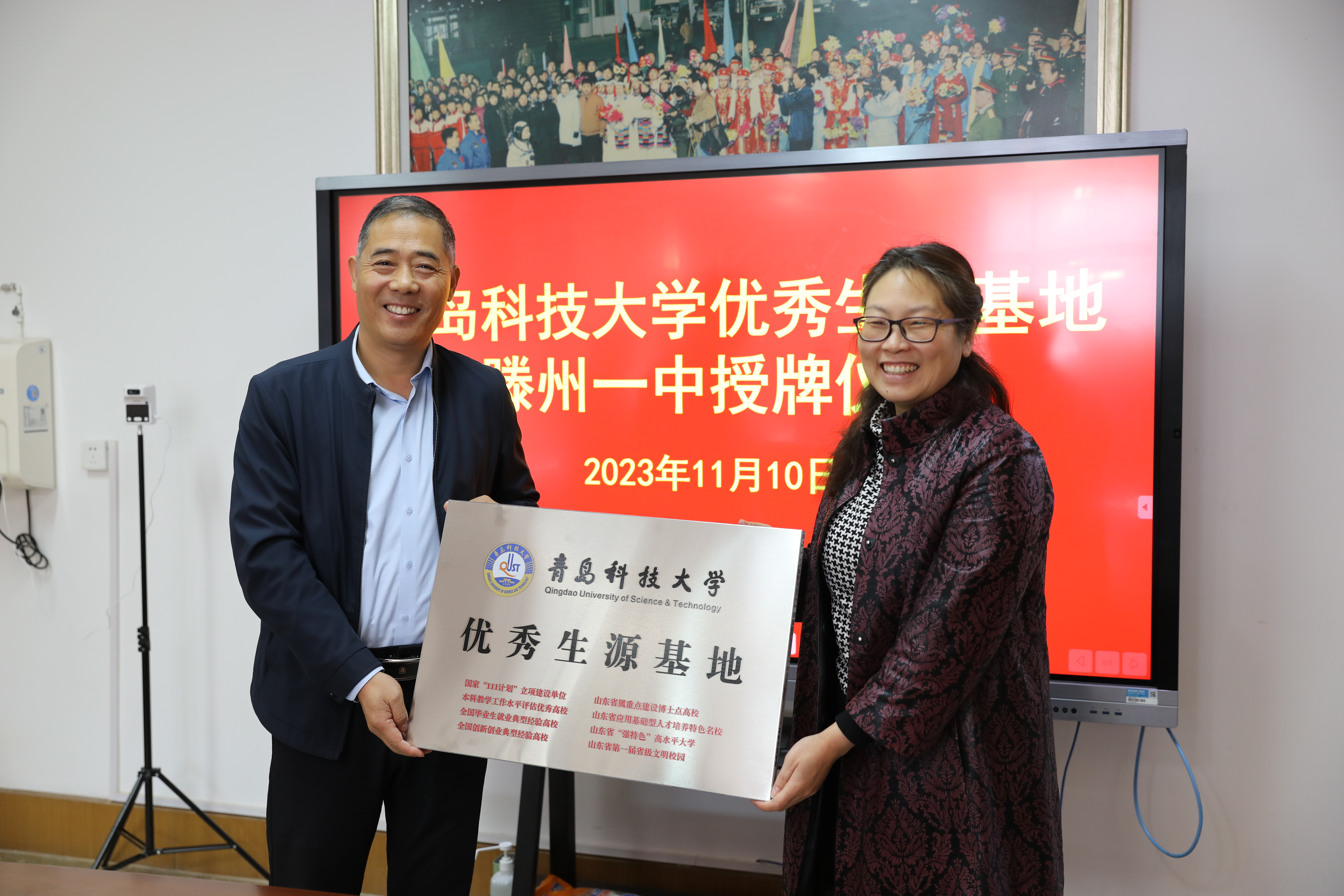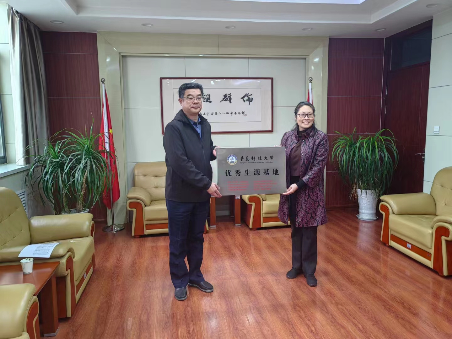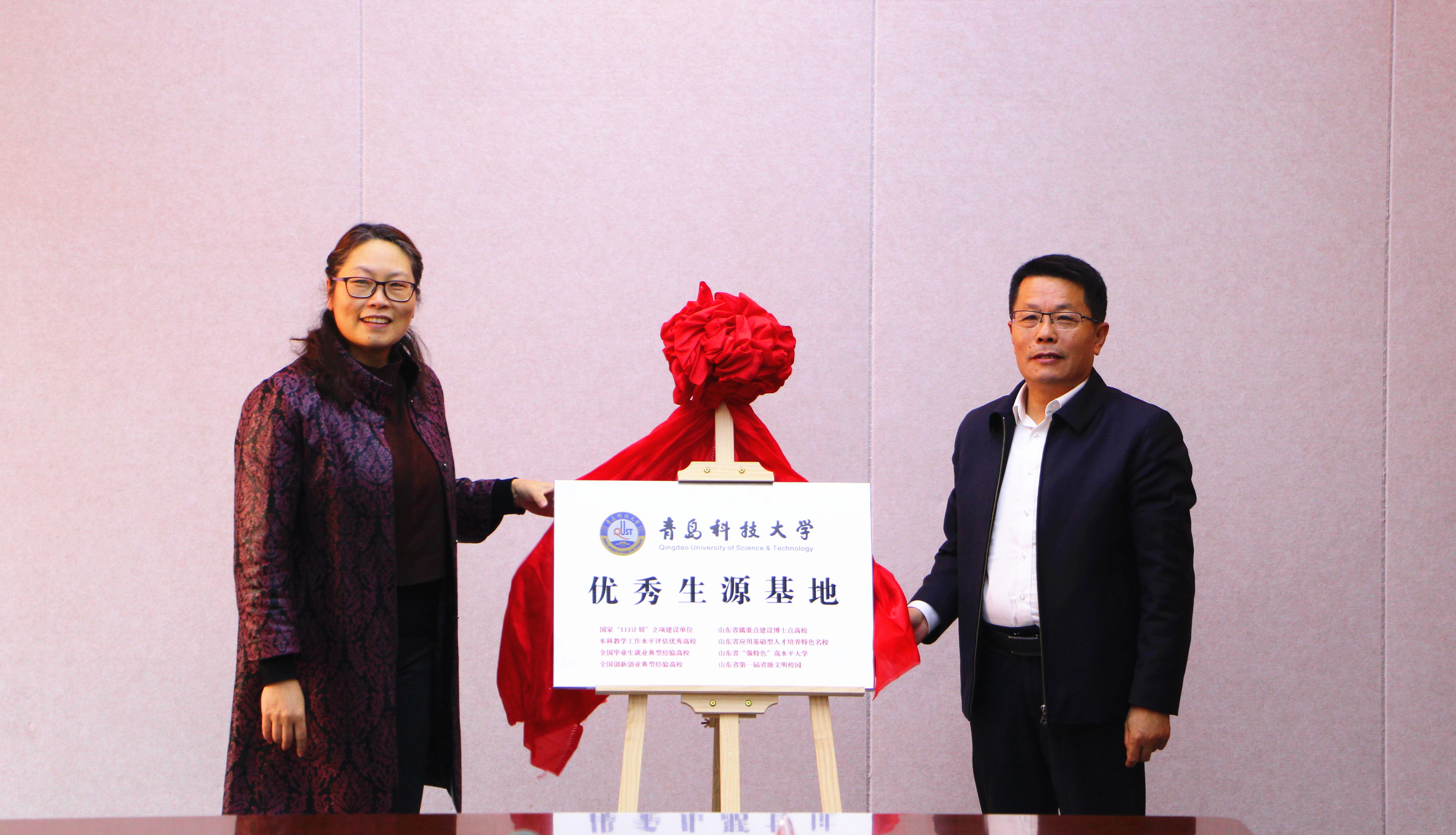 座谈会后,李卉分别与三所高中代表签订《优秀生源基地共建协议书》,并授予“青岛科技大学优质生源基地”铜牌。