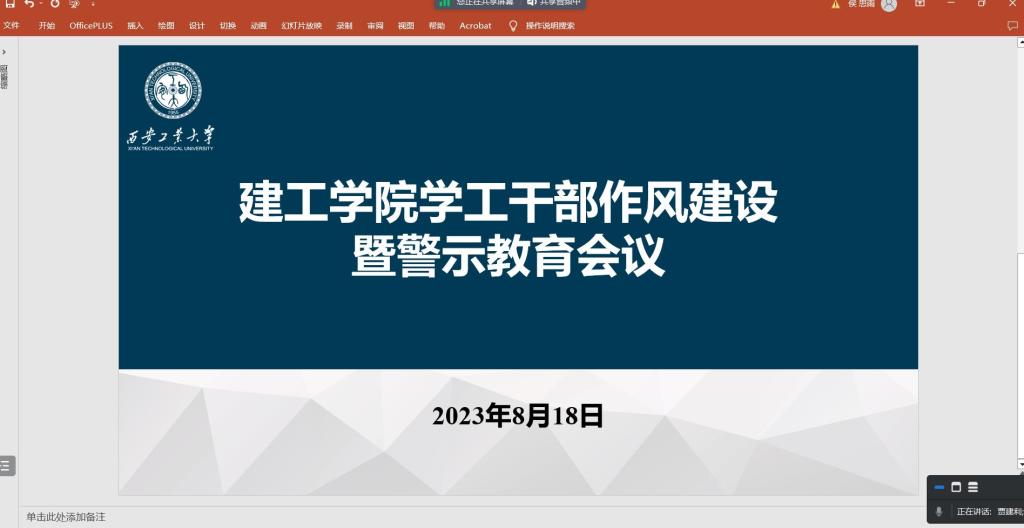 8月18日下午,建筑工程学院通过腾讯会议平台召开学工干部作风建设暨警示教育会议。学院全体辅导员参加会议,会议由学院党委副书记、纪委书记贾建利主持。