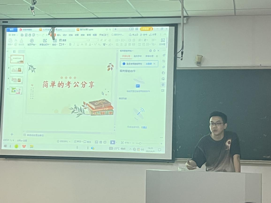 为引导学生树立学业规划意识和正确的就业观,提升高质量就业。结合学习贯彻主题教育要求,法学院研究生会立足学生需求、学情实际,于6月9日下午在弘毅楼C406举行了考公经验分享会,邀请张俊豪、王慧宏和宋健作为分享嘉宾,法学院研究生会全体成员参加了分享会。